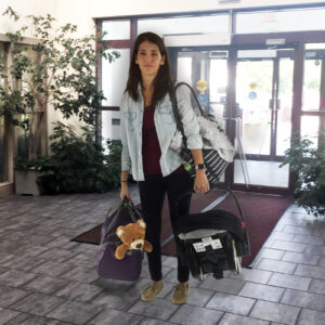Parents with an infant typically have an infant carrier and a lot of belongings to carry with them.